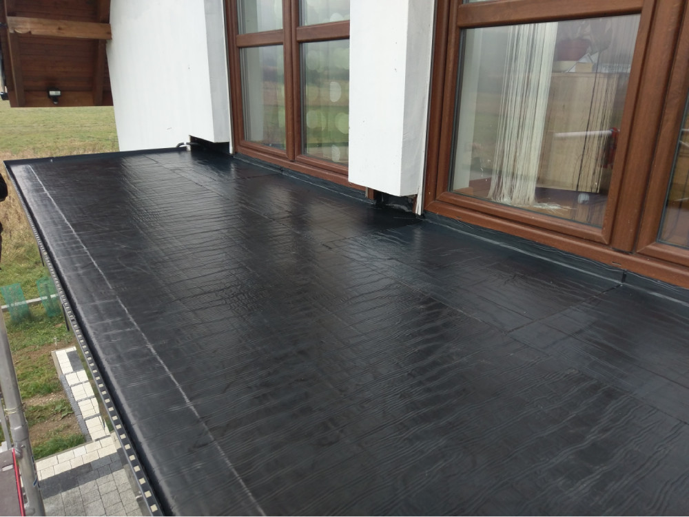 Podłoża z płyt drewnopochodnych tj. sklejka lub płyty OSB spotykamy najczęściej w budynkach szkieletowych tzw. kanadyjki lub na konstrukcjach stalowych/drewnianych balkonów dostawnych. Z uwagi na specyfikę podłoża jakim jest nieciągła powierzchnia zbudowana z odrębnych płyt, hydroizolacje jakie można bezpośrednio zastosować ograniczają się do rolowych elastycznych hydroizolacji typu EPDM fot. 19 ewentualnie PVC. Przygotowanie podłoża polega jedynie na kontroli stanu płyt, schowaniu łbów wkrętów mocujących tak, aby nie przebiły hydroizolacji i wyszlifowaniu całej powierzchni.
