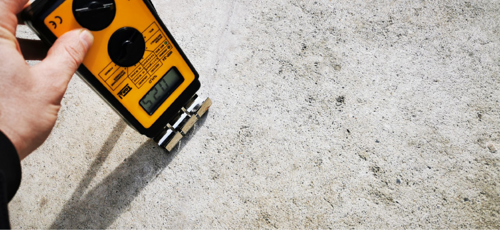 Pomiarów wilgotności podkładów betonowych lub cementowych dokonuje się najczęściej przy użyciu wilgotnościomierza budowlanego oporowego – taki jak do pomiarów wilgotności drewna, urządzenia indukcyjnego fot. 13 lub metodą karbidową tzw CM. (Kontrowersje związane ze słusznością i dokładnością metod pomiarowych wilgotności materiałów budowlanych pomijamy w tym artykule.)