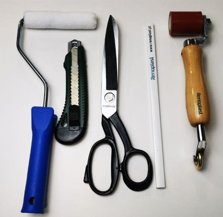 Montaż membrany EPDM jest prosty i szybki, nie wymaga również specjalistycznych narzędzi ( fot. 25), które ograniczają się do pięciu prostych, które znajdziemy w większości sklepów i w sieciach DIY są to: