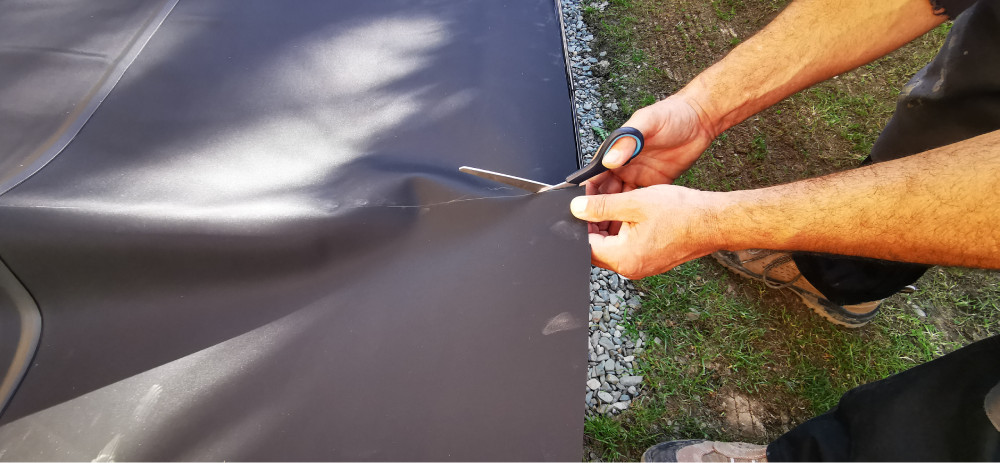 Wszystkie krawędzie membrany EPDM na szerokości 20 cm podwijamy do wewnątrz.