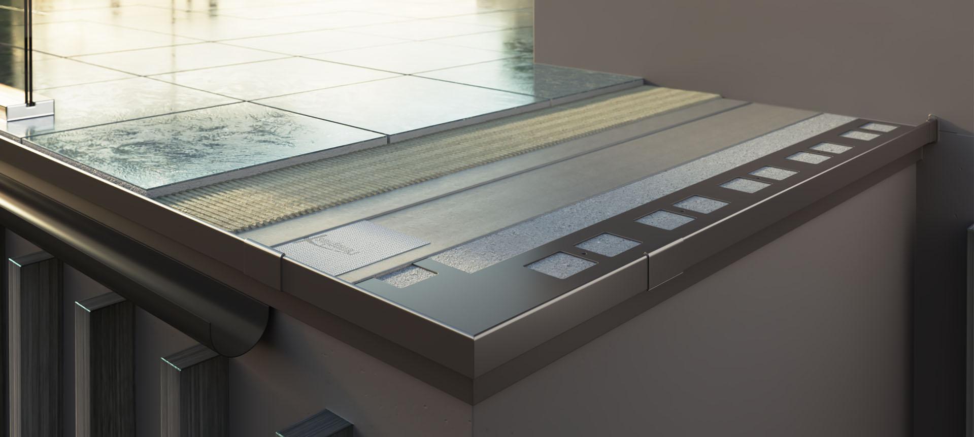 Profil do połączenia z hydroizolacją poprzez taśmę z możliwością montażu aluminiowej rynny R50.